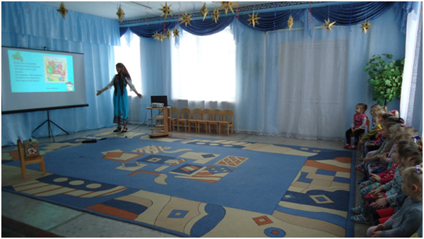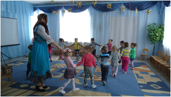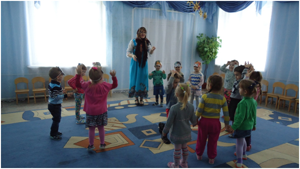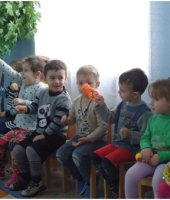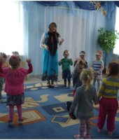 В соответствии тематикой недели «Что за прелесть эти сказки» в феврале месяце 2017года с детьми младшей группе «Пчелки» было проведено развлечение «В поисках колобка». На праздник к детям пришла бабушка из сказки «Колобок» и рассказала, что от неё убежал колобок и попросила детей помочь его найти. Ребята сначала называли сказочных героев, к которым мог пойти в гости колобок. Затем просмотрели презентацию, где смогли попутешествовать по русским народным сказкам. А так как наш колобок очень веселый, дети сыграли ему русскую народную мелодию «Во саду ли во огороде». Ребята смогли найти бабушке колобка и рассказали ему, что нельзя убегать от старших, иначе случится беда.