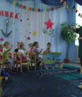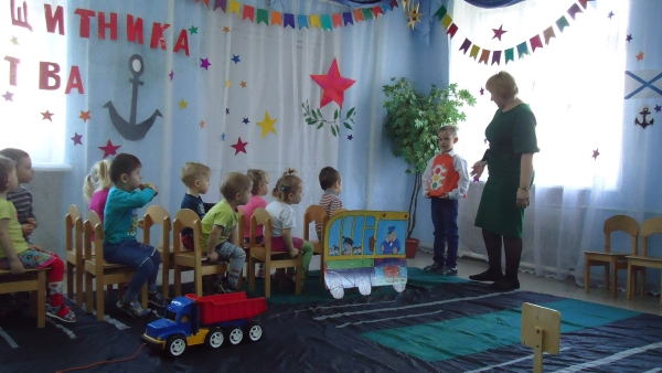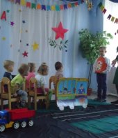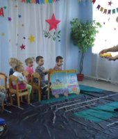 В группе раннего возраста "Полянка" 27 февраля прошло развлечени "К светофору Мигалке". В гости ребята отправились на автобусе. А билетами послужили ответы малышей, которые называли части пассажирского транспорта. Разместившись, детвора отправилась в путь под весёлую песенку Е.Железновой «Автобус», которую они сопровождали движениями. По дороге они встретили заблудившуюся собачку, которая шла прямо по проезжей части. Воспитатель предложила взять её с собой к Мигалке, чтобы она смогла тоже выучить правила дорожного движения. По пути следования малыши видели и легковой, и грузовой транспорт. Останавливались, чтобы рассмотреть машины, назвать их части и отличия.