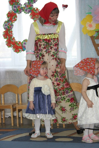 В детском саду царила атмосфера праздника. Дети пришли на утренник нарядные и весёлые, правда боялись, что мамы могут уйти. Но в этот день всё было по-другому. Зазвучала музыка и ребята зашли в нарядно украшенный праздничный зал. Первую песню исполнили немного неуверенно, но когда в гости пришло солнышко с лучиками-сюрпризами, и дети стали поздравлять мам танцами, то стеснение пропало. Вот первый танец "Топотушки", а потом и с платочками, а какой замечательный букет составили, танцуя для мам, из цветов. Ну какой же праздник без сюрприза! В гости к нам зашла Матрёшка, а в корзинке у неё подарки для ребят: для девочек косынки, для мальчиков пояса. Вместе с ней ребята исполнили танец с ложками "Мы матрёшки". Смелее зазвучали голоса детей, и они подарили песню "Я пеку, пеку, пеку" самым родным и близким, мамам и бабушкам.