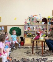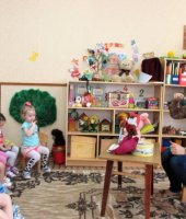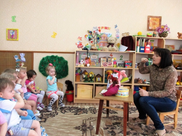 В группе раннего возраста «Ягодка» в марте месяце прошла неделя «Мойдодыр». На которой, ребята закрепили культурно-гигиенические навыки в процессе режимных моментов. В ходе этой недели малыши совершили путешествия в страну Чистюлию, где искупали девочку чумазую, выяснили , почему надо обязательно мыться с мылом, разучили потешку «Ай, лады, лады не боимся мы воды». В конце недели прошло развлечение по теме: «В гости к королеве зубной щётке». К ребятам пришёл зайчишка, у него заболели зубы и ребята решили помочь ему. Вместе с ним дети отправились к королеве зубной щётки в её королевство. Путь был неблизкий, и они поехали на автобусе. Ребята рассказали зайчонку для чего надо чистить зубы. Вместе с королевой провели гимнастику для зубов и язычка. Она подарила зайчонку зубную пасту , он обрадовался подарку и пообещал регулярно чистить зубки утром и вечером, все вместе поиграли в весёлую игру «Зайчики и лиса».