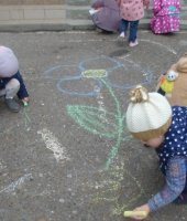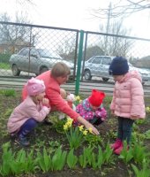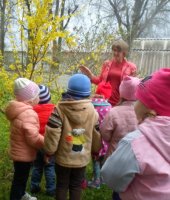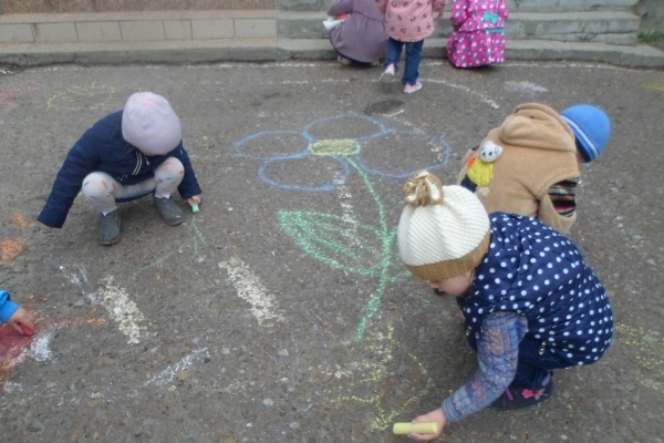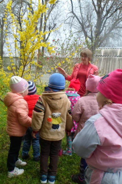 И, конечно, нам взрослым надо успеть показать детям всю красоту весенней природы. Для этого я с детьми младшей группы организовываю тематические прогулки, на которых мы с детьми наблюдаем за наступлением весны. То есть на прогулке: мы слушаем, как поют птицы, радуясь теплу и солнцу, как почки на деревьях и кустах наливаются новой жизнью, как расцветают навстречу солнцу первые цветы, как люди сняли свои тяжелые шубы и надели демисезонные вещи. Радуются весне ребята, потому что можно на улице мы начали играть в весенние игры " Гори, гори ясно..", "Дождик и солнышко", рисовать цветными мелками на асфальте, играть воздушными шарами.