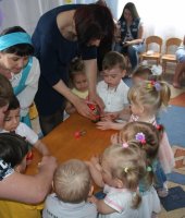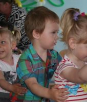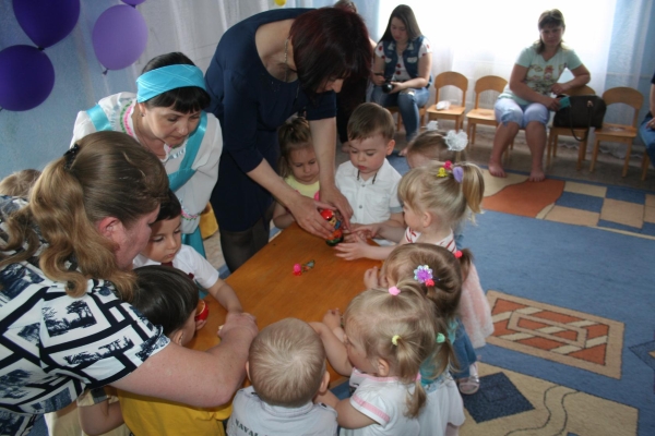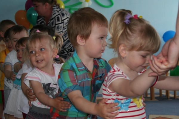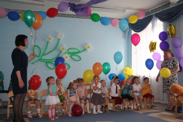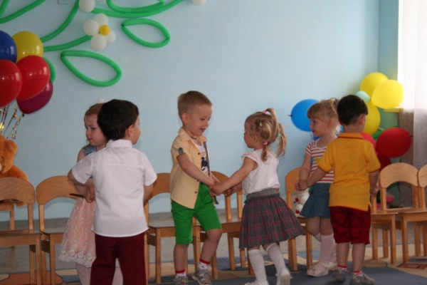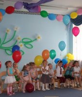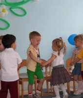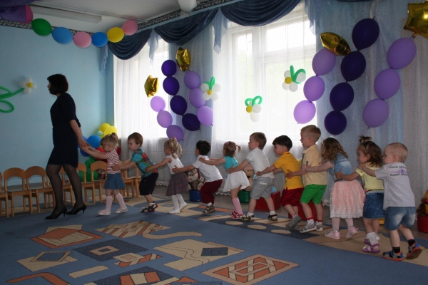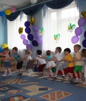 В конце учебного года в группе раннего возраста «Ягодка» мы провели праздник по теме «Стали мы уже большими». На этот праздник мы пригласили родителей малышей. Ребята отправились в путешествие на поезде в город Детства. В ходе этого путешествия дети посетили станцию «Спортивная» там они выполняли весёлую зарядку. На станции «Аппетитная» исполнили песню «Пирожки». Затем отправились в гости к игрушкам на станцию «Игрушечную», где все вместе накормили зайку овощами, а медвежонка фруктами угостили. На станции «Музыкальная» ребят встретила игрушка матрёшка, но потом случилось чудо, деревянная матрёшка ожила и пригласила всех ребят станцевать весёлую польку. Ещё матрёшка принесла в своей корзинке игрушечных подружек матрёшек, дети проявили быстроту, сообразительность в аттракционе «Собери матрёшку». Всём ребятам матрёшка подарила по воздушному шарику. Потом все сели в поезд и вернулись в детский сад.