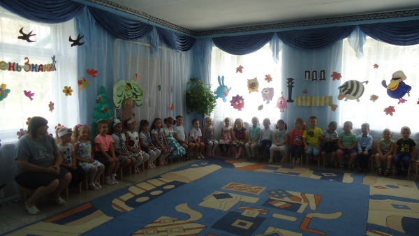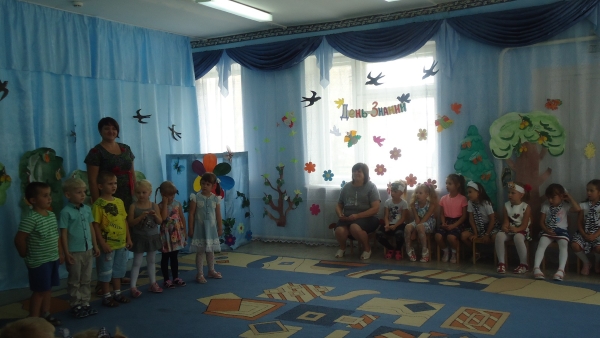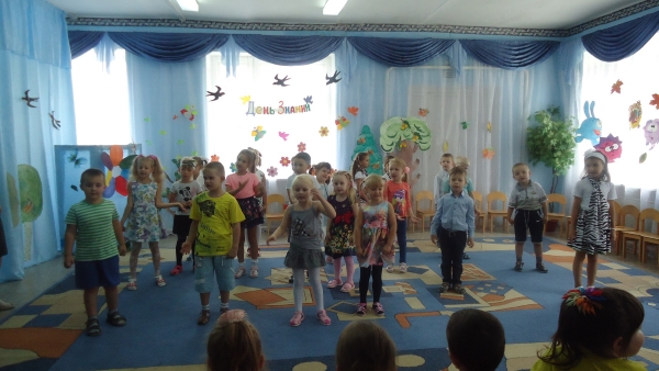 Вот и наступила осень. Для нас, педагогов, вместе с осенью наступил и новый учебный год. Хотя для детских садов он и не заканчивался, ведь мы работаем с детьми постоянно. Первый день осени – не просто день. Для всех ребят и школьников, и дошколят это праздник – день Знаний. Ежегодно в этот день по всей стране проходят мероприятия, посвящённые этому празднику. В школах проводятся линейки, а в детских садах – развлечения. Вот и мы в нашем детском саду предложили ребятам отправится в страну Знаний и они с удовольствием откликнулись на наше предложение. Наше путешествие так и называлось – «Путешествие в страну знаний». На пути следования нас ждали различные остановки. Их названия дети отгадывали по символам – вопросительный знак – «Загадково» (отгадывали загадки о сказках и названия мультфильмов по музыкальным фрагментам), скрипичный ключ – «Песенка» (исполнили песню В. Шаинского «Улыбка»), пешеходный переход – «ЮПИД» (выступление отряда «Зебрята»), танцующие дети – «Танцулькино» (танец «Флешмоб»).