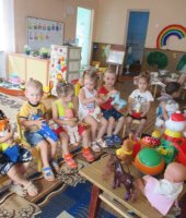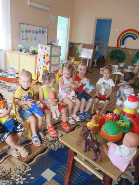 В августе месяце 2017 г. в младшей группе «Ягодка» прошла тематическая неделя «Игры и игрушки». В ходе этой недели мы с детьми составляли рассказ об игрушке. В строительных играх ребята строили домики для игрушек. В игре «Магазин игрушек», мы рассмотрели игрушки, уточнили, что игрушки бывают: плюшевые, деревянные, резиновые, пластмассовые, глиняные. Я показала детям иллюстрации, как изготавливают игрушки на фабрике. Закрепили с детьми стихи из серии «Игрушки» А.Барто. Итогом недели стала продуктивная деятельность «Неваляшка в гостях у ребят», дети апплицировали неваляшке подружек.