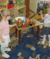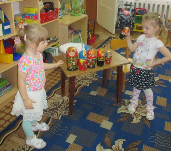 В младшей группе «Ягодка» в ноябре месяце 2017 г. прошла неделя «Мы играем». На этой недели мы с детьми рассматривали игрушки. Ребята узнали, что игрушки могут быть изготовлены из разных материалов: из глины, дерева, резины, пластмассы, стекла, металла, ткани, соломы. Мы вместе с детьми совершили увлекательное путешествие в историю, где они узнали какие были игрушки раньше. Играли с детьми сюжетно-ролевую игру «Магазин игрушек». Ребята учились составлять описательный рассказ об игрушках, а так же вспомнили стихи «Игрушки» А. Барто. Итогом недели стало развлечение по теме: «Матрёшка в гостях у ребят». Матрёшка загадала загадки об игрушках, ребята искали подружек матрёшек в группе, собирали матрёшку, выстраивали матрёшек по росту, танцевали с матрёшками и расписывали тканевые платочка красивым узором.