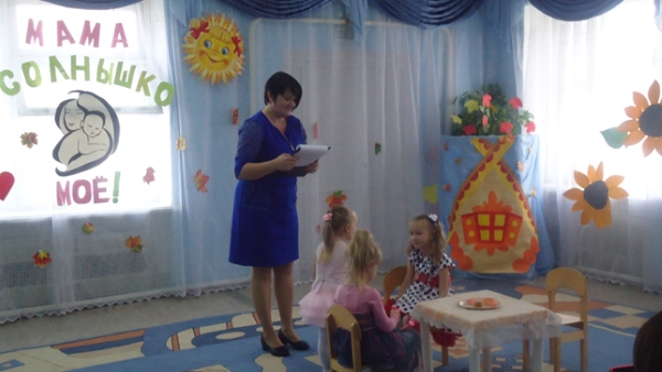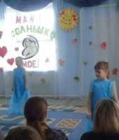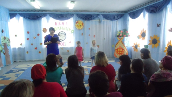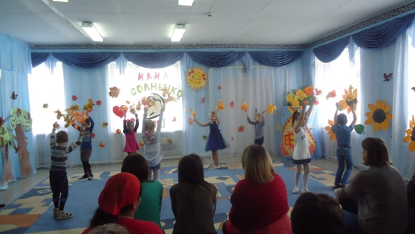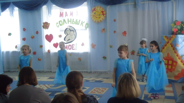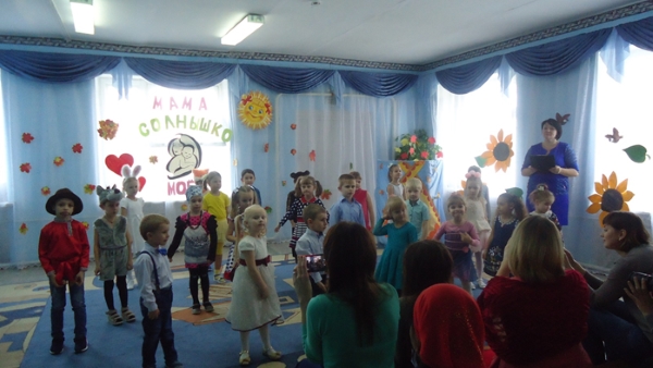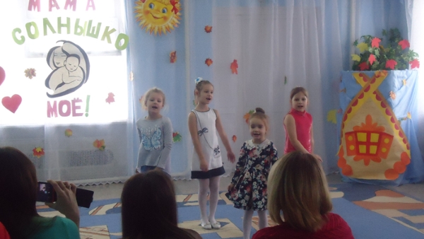Уже стало традицией в нашем детском саду ежегодно поздравлять наших мам. В этом году мы так же организовали для них праздничный концерт. В этом мероприятии впервые принимали участие, помимо детей старшего возраста и ребята средней группы. С ребятами мы подготовили разнообразную программу. Дети старшего возраста исполнили пени «Мамина песенка», «К нам гости пришли», «Три синички», исполнили танцы «Танец с осенними веточками» и «Танец с шарфами», а с ребятами средней группы подготовили и показали сценку «Три мамы», и песенку «Зореньки краше». А ещё, конечно же, стихи. В конце праздника, по традиции все участники и взрослые исполнили замечательную песню из кинофильма «Мама». Ребята очень постарались, что бы концерт удался и у них получилось. Гости остались довольны и, надеюсь, что в следующем году они снова к нам придут.