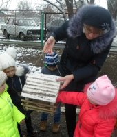 Поэтому мы с детьми средней группы «Радуга» регулярно наполняем кормушки, наблюдаем за прилетающими птицами во время прогулок. Выясняем: какие птицы прилетают, какой корм предпочитают, рассматриваем следы на снегу, оставленные птицами. Для того чтобы дети лучше запомнили название птиц рассматриваем с ними картинки из серии «Птицы», разучиваем стихи о перелетных птицах, имитируем движение и песни птиц. А так же провожу беседы по темам «Певчие птицы», «Зимующие птицы», «Чем мы можем помочь птицам зимой», в совместной деятельности с детьми мы лепим из пластилина птичек, с целью закрепить части тела птиц.