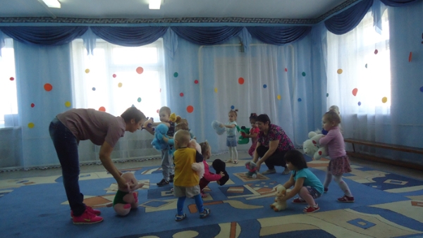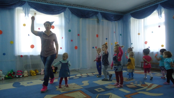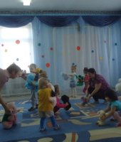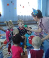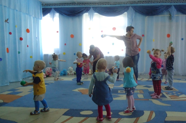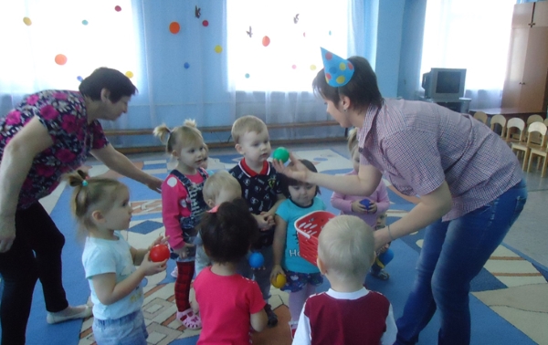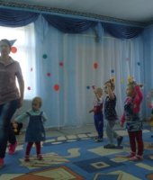 В преддверии Нового года в группе раннего возраста нашего детского сада мы провели очередное развлечение. Украсили зал разноцветными горошинами, чтобы было ярко, нарядно и весело. В гости к ребятам приходил клоун Горошек (инструктор по физическому воспитанию Улевская Н.Г.). Для ребят он приготовил разные игры и танцы. Ребята с удовольствием танцевали с разноцветными мячиками, погремушками, с мягкими игрушками, играли в догонялки и делали физ. разминки. Клоун Горошек очень понравился детям и, когда он уходил, ребята пригласили его к себе в гости. Вот такое получилось развлечение – весёлое и забавное.