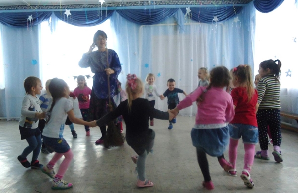 Для того, чтобы дети поверили в сказку и не разочаровались в ней, я с детьми средней группы организовываю и провожу развлечения. В конце тематической недели «Зимние забавы», мною было проведено развлекательное мероприятие «Зимние чудеса», на котором сами воспитанники принимали активное и непосредственное участие. К ребятам на метле прилетела Баба Яга, загадала им загадки о зиме, прокатила их на саночках, поиграла с ними в подвижную игру «Бабка Ешка- костяная ножка».