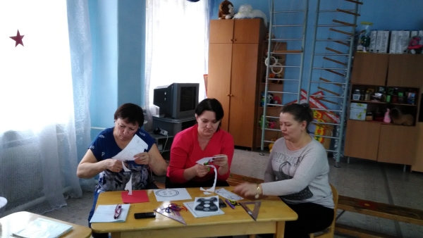 В феврале 2018 года, я подготовила и провела мастер-класс для педагогов на тему «Игры из бросового материала на развитие мелкой моторики», в ходе которого познакомила коллег с приёмами и упражнениями, направленными на развитие мелкой моторики и помогла в изготовлении пособий для развития мелкой моторики своими руками. Нам удалось изготовить сразу две игры – «Шнуровка», которая не только способствует развитию мелкой моторики и координации движения пальцев рук, а ещё используется с целью обучения детей элементам самообслуживания – зашнуровыванию обуви, завязыванию шнурков и «Собери цепочку», которая используется как для развития тонкой моторики рук, так и с целью обучения детей элементам самообслуживания - самостоятельному застегиванию одежды. Педагоги проявили интерес, старательность и творческую фантазию при изготовлении своих игр. Игры были не только красочно оформлены, но и подобраны с учётом возрастных особенностей воспитанников. В качестве накопительного материала педагогам предложены шаблоны для «Шнуровки».