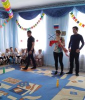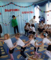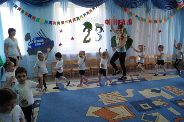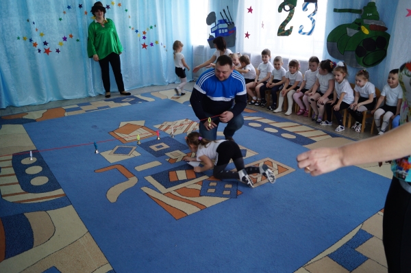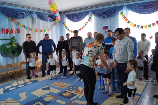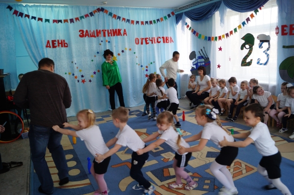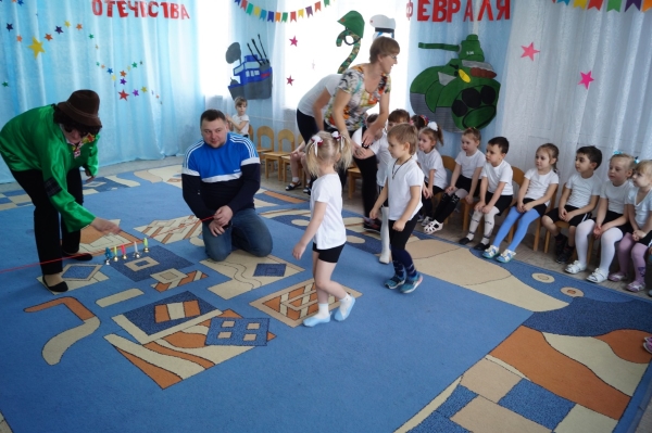 «Веселые старты» начались с поздравления пап и дедушек с Днем защитника Отечества. Дети исполнили песню «Будущий солдат», а затем началось самое интересное и захватывающее. В гости пришел Леший, который не знал о празднике , ребята ему рассказали о Дне Защитника, и он захотел остаться у детей на соревнованиях. Присутствующее волнение у родителей в начале праздника - пропало. Принимая позицию ребенка, они уже кричали, «болели», переживая за свою команду. Все старались изо всех сил, чтобы прийти к финишу первыми. Участники показали свою ловкость, точность, силу, быстроту, сообразительность и организованность.