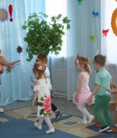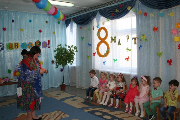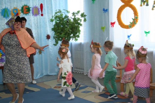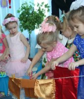 В младшей группе «Ягодка» прошёл праздник мам «Бусы для любимой мамочки». На этом празднике ребята читали стихи для мам и бабушек, поздравляли их песенкой. Мальчики подарили гостям танец «Мамины помощники», устроили большую стирку. А девочки помогли им развесить платочки на верёвочку. Также ребята помогли мамам собрать фрукты на компот. Ребятам бусинки принесли клоун Клёпа, курочка Ряба и бабушка Арина. Каждый из ребят станцевал танец со своей мамой. Все ребята приготовили подарки бусы для мамочки, а для бабушки зайчонка.