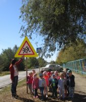 В сентябре месяце в средней группе прошла неделя по теме «Ребёнок на дороге». В течение этой недели мы с ребятами рассмотрели картинки из серии «Транспорт». На прогулки наблюдали за транспортом специального назначения. Учились составлять рассказ по серии картин. Закрепили умение отгадывать загадки о транспорте. Формировали знания у детей о правилах безопасного поведения на дороге. Итогом недели стала экскурсия к светофору. Входе этой экскурсии ребята закрепили знания ,как надо переходить дорогу по пешеходному переходу. Закрепили сигналы светофора. Формировали умение называть и показывать дорожные знаки. По завершении экскурсии ребятам предложили раскраски по теме «Школа Светофорика».