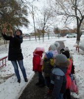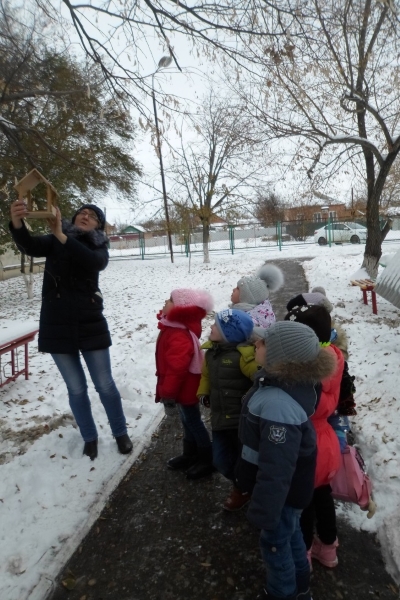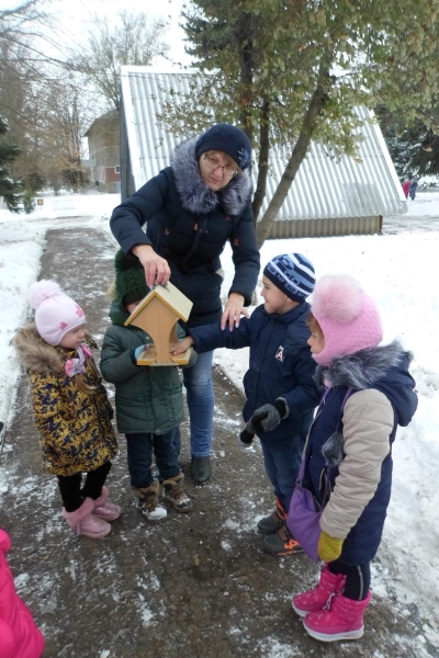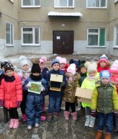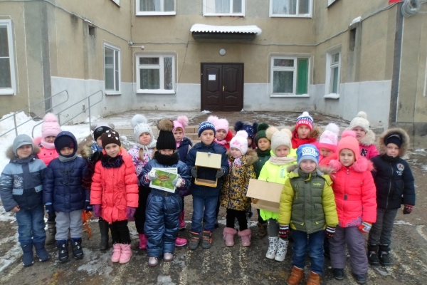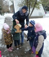 C целью привлечения к практической деятельности по охране птиц зимой, привития любви к птицам, воспитания экологической культуры в ноябре месяце в старшей группе « Радуга» была проведена операция «Птицам наша забота». В ходе операции были изготовлены и развешены на территории детского сада кормушки для птиц, из различного материала. Дети не просто участвовали в развешивании кормушек на деревьях. Время, проведенное на природе, стало для ребят праздником: ребята кормили пернатых, приготовленным заранее угощением, рассказывали стихи и разгадывали загадки о птицах, участвовали в экологической викторине «Берегите птиц», заучивали пословицы и народные приметы о птицах, играли в подвижные. Проведенные мероприятия расширили представления у детей о птицах нашего края, о жизни птиц зимой, об их особенностях, питании.