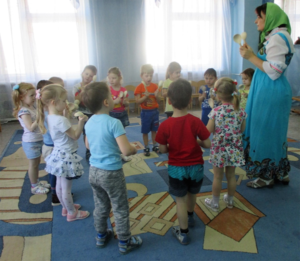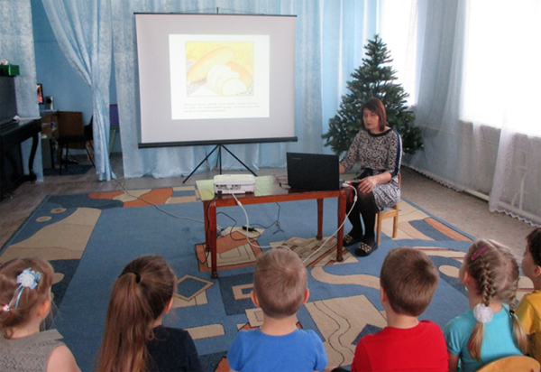 В феврале месяце в средней группе прошла неделя «Хлеб - всему голова!» В ходе этой недели мы с дошкольниками рассматривали хлебобулочные изделия, знакомились с профессией пекаря, просмотрели презентацию по теме «Как из зерна булка получилась». Итогом недели стало развлечение «Хлебный колосок». В ходе этого развлечения дети расширили знания о труде земледельцев, закрепили названия хлебных изделий. В гости к ребятам пришла хозяюшка. Вместе с ней дети совершили путешествие в прошлое и узнали, как люди раньше выращивали хлеб. Хозяюшка рассказала сказку «Колосок», исполнила песню «Хлеб всему голова». Дошколята поиграли в игру «Назови хлебобулочные изделия», а затем исполнили песни «По малинку в сад пойдём», «Каравай», и сыграли весёлый оркестр на ложках. Ведь русский народ может не только трудиться, но и веселиться.