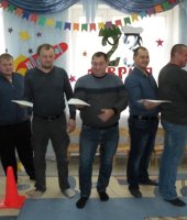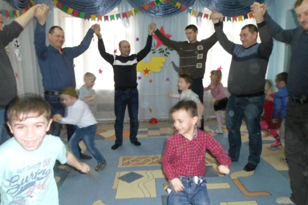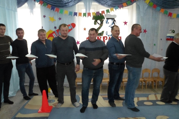 В конце мероприятия пап и дедушек ребята поздравили открытками, изготовленными своими руками.