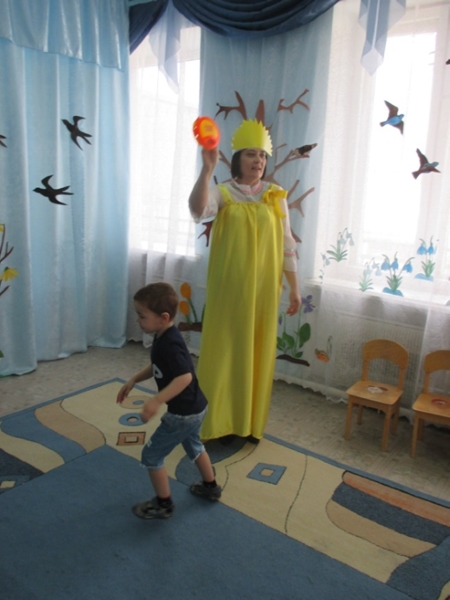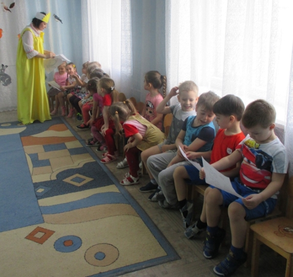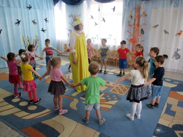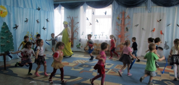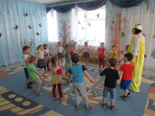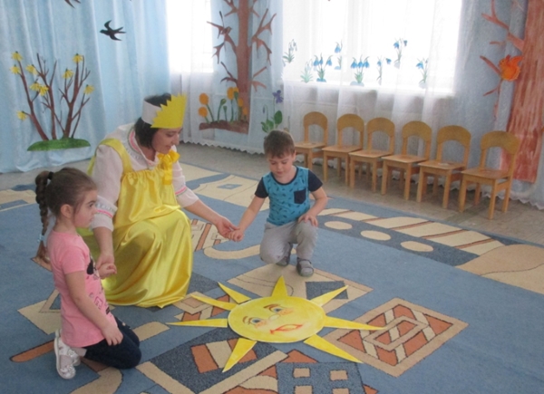 В марте месяце в средней группе прошла неделя по теме «К нам весна шагает быстрыми шагами». В ходе этой недели мы с детьми закрепили название первоцветов, рассматривали картинки из серии «Перелётные птицы», заучивали стихи о весне, просмотрели с ребятами презентацию «Март». Итогом недели стало развлечение «Пришла весна». Ребята отправились на поезде в путешествие в весенний лес. В лесу ребят встретило солнце красное. Все вместе под весёлую музыку завели «Весенний хоровод», затем поиграли с солнышком в игру «Ручей и река». Ребята перемещались по залу в такт музыки, а по окончанию выстроились в большую речку Дошколята отгадывали весенние загадки. Все вместе собрали лучики солнышку. В подвижной игре «Солнышко» проявили ловкость, быстроту, сноровку. В эстафете «Собери солнечные зайчики» ребята подпрыгивали и ударяли в бубен. В конце путешествия солнышко подарило детям раскраски.