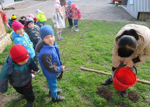Совместная деятельность детей и взрослых доставила массу приятных моментов. С большим удовольствием дети помогали взрослым копать ямки, придерживать саженцы и т.д. Наши дети настоящие патриоты своей Родины. Деревца, посаженные ими, будут радовать многие поколения других деток, которые будут посещать наш детский сад.