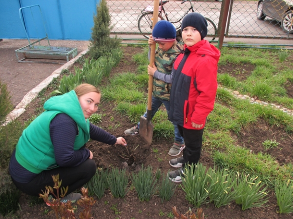 На территории участка было высажено липа, рябина, дополнена клумба цветами.