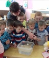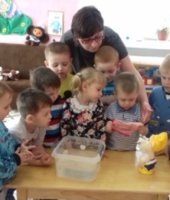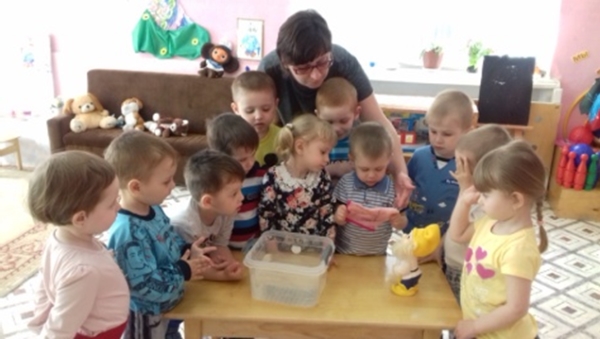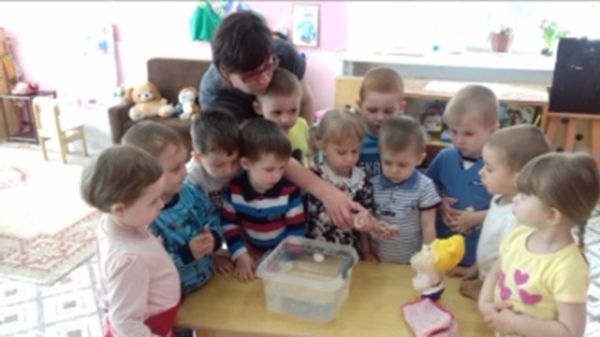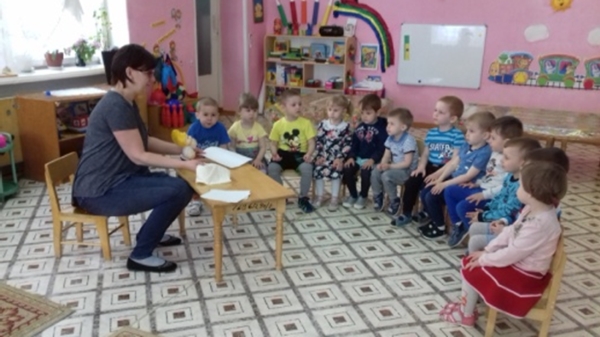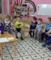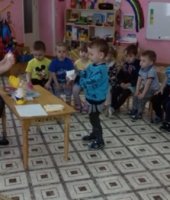 В гости к детям пришёл гномик, который не знал из какого материала сшить себе одежду на праздник. Дети решили помочь ему. Они поиграли с гномом в игры: «Угадай на ощупь», «Что из чего сделано?», отгадали и назвали предметы из бумаги и ткани. Дошколята объяснили гостю, что одежду шьют из ткани, потому что она прочная, а бумага быстро рвется. Вместе с детьми провели опыты, «Какой звук издает предмет?», «Какой материал прочнее?» с целью показать сказочному герою, что бумага шуршит, а ткань беззвучна, что с водой все бумажные предметы портятся, а предметы из ткани нет. В конце мероприятия гномик поблагодарил ребят за помощь и подарил на прощанья медальки «Знатоки».