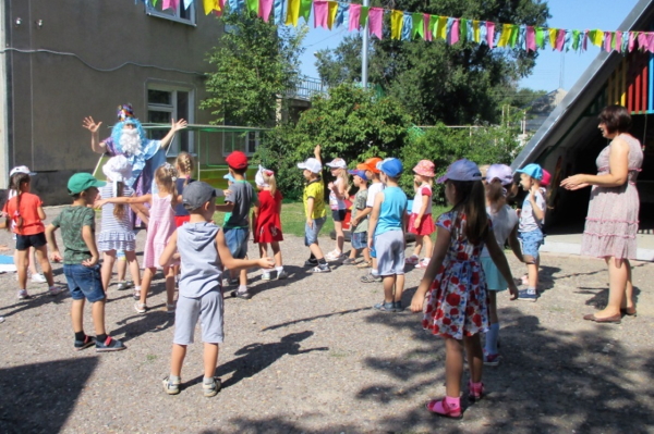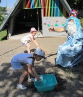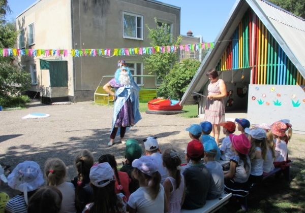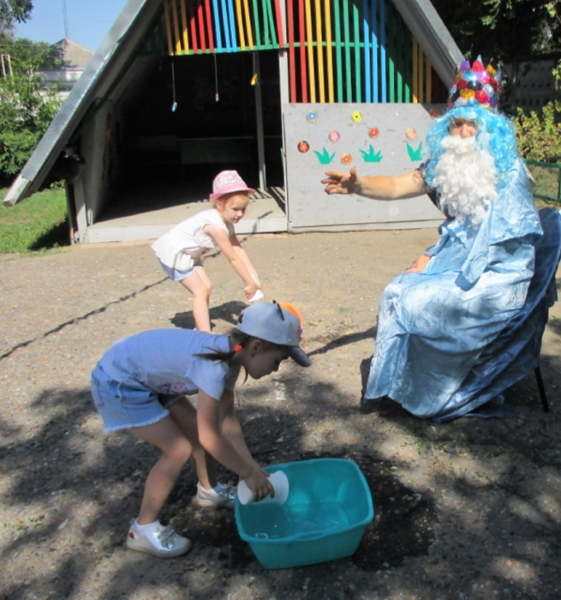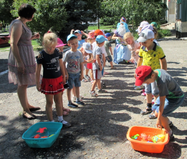 В старшей группе «Ягодка» в начале августа прошла тематическая неделя по теме: «Природа вокруг нас». В ходе этой недели мы с детьми совершили путешествие в удивительный мир природы. Дошкольники вспомнили названия диких и домашних животных, птиц, рыб, насекомых. В дидактической игре: «Кто, что ест?» дети закрепили знания о питании животных, в игре «Взрослые и дети» ребята еще раз повторили название детенышей животных. В экспериментальной деятельности расширила у дошколят знания о свойствах песка, воды, солнечного света, а в минутках безопасности формировала у ребят навыки правил безопасного поведения в природе. Итогом недели стало развлечение «День Нептуна». В гости к детям пришёл сказочный герой Нептун и предложил ребятам различные задания: «Наполни ёмкость водой», «Запусти рыбок в водоём», «Собери жемчужины со дна моря». Вместе со сказочным героем поиграли в игру «Море волнуется раз». Закончили развлечение весёлым танцем. Нептун пожелал детям: «Закаляйтесь водой, загорайте, плавайте и ныряйте и никогда не унывайте!».