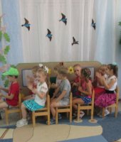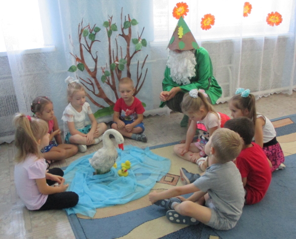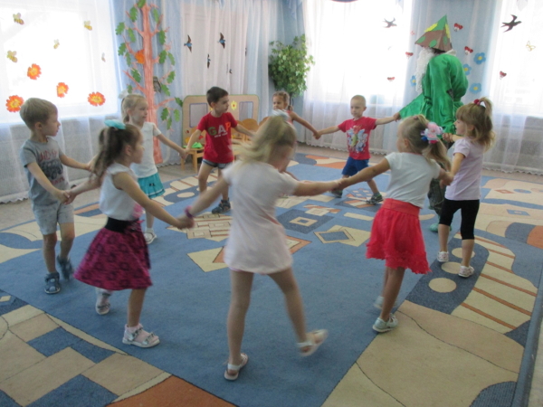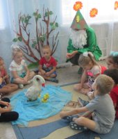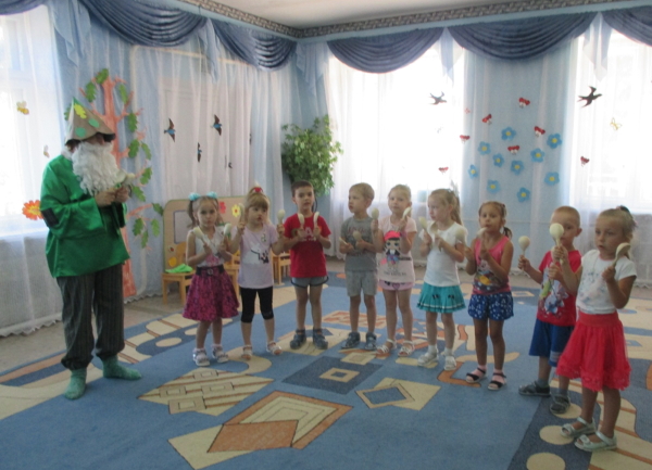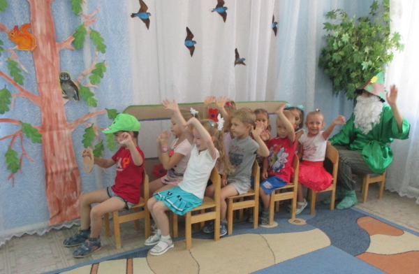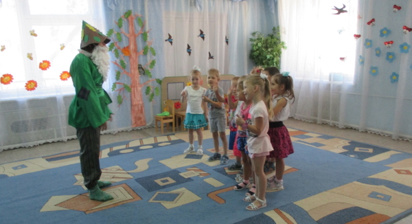 В последнюю неделю мы с детьми старшей группы отправились на автобусе в лес, где нас ждал старичок – Лесовичок. Он нам загадывал загадки про лесных жителей, играл с ребятами на деревянных ложках, пел весёлые песни, танцевал, научил играть в новую игру «Лягушки в кадушке». А ещё ему было интересно, знают ли ребята правила поведения в лесу. Дети не разочаровали Лесовичка и ответили на все его вопросы. Когда пришло время возвращаться, ребята пригласили его к себе домой и обещали научить его правилам дорожного движения.