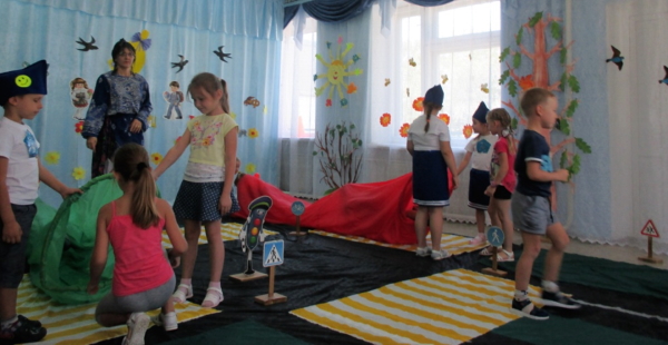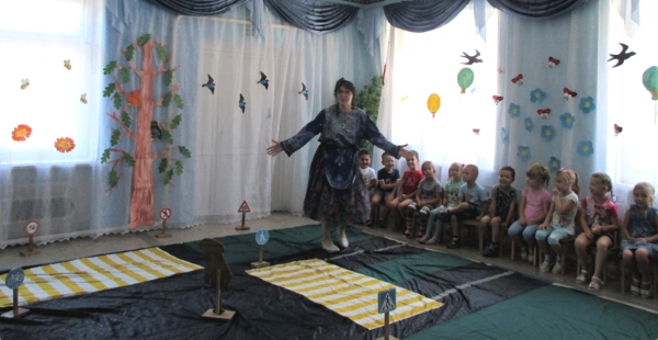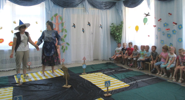 В начале сентября в старшей группе «Ягодка» прошла тематическая неделя «День знаний». В ходе этой недели дети рассматривали картинки из серии «Школьные принадлежности», расширили свои знания о школе. Во всех школах 1 сентября проходят «День знаний». И мы с дошкольниками старшей и подготовительной группы отправились в путешествие по стране знаний. В ходе этого путешествия ребята вспомнили названия знакомых сказок и проиграли в музыкальную игру. В гости к детям пришёл Незнайка, он убежал из леса от бабы Яги. Дошколята провели урок безопасности, на котором рассказали Незнайке, как надо вести себя в транспорте, повторили названия дорожных знаков, исполнили песню о правилах дорожного движения, преодолели подземный переход. В конце урока к детям пришла баба Яга и загадала ребятам загадки о транспорте. Урок безопасности закончился, и баба Яга с Незнайкой отправились в лес обучать лесных жителей дорожным наукам.