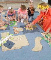 К ребятам пришла сама Осень. Она предложила детям отправиться в гости, а к кому дети догадались сами, отгадав загадки-подсказки.