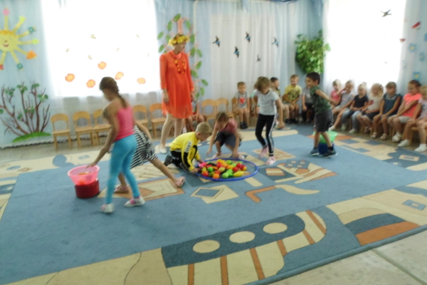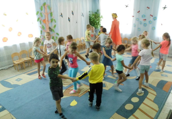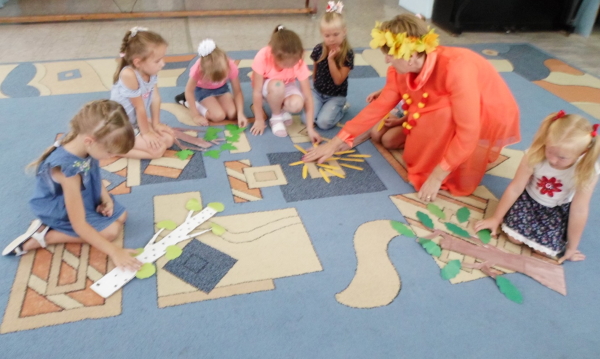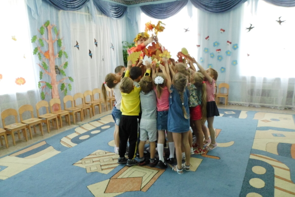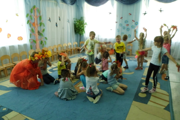 С большим удовольствием ребята участвовали в импровизации «Последний летний ветерок». А затем дошколята поиграли с Осенью в игры» «Найди свой листок», «Что где растёт?», «Одень дерево».