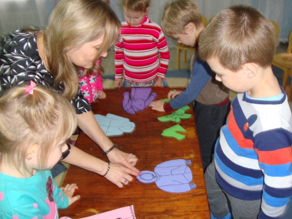 В октябре 2019 года у нас в детском саду прошла неделя «Я в мире человек», в течение которой мы с детьми закрепляли представления об одежде, ее назначении, деталях, материалах, из которых она сшита. Итогом недели был логопедический досуг в старшей группе «Ягодка», который я проводила с помощью презентации на тему «Маша – растеряша». Дети помогали Маше-растеряше найти одежду, которая спряталась на картинке, развешивали сушить футболки с пуговицами в определенном порядке: сначала футболку с одной пуговицей, потом – с двумя, и так далее, находили лишние вещи на полках, называли одежду ласково, поиграли с «Пуговицей-непоседой», собирали разрезные картинки с изображением одежды и рассказывали из каких деталей она сшита. Ребята отлично справились с заданиями и помогли Маше найти одежду, чтобы отправиться в детский сад.