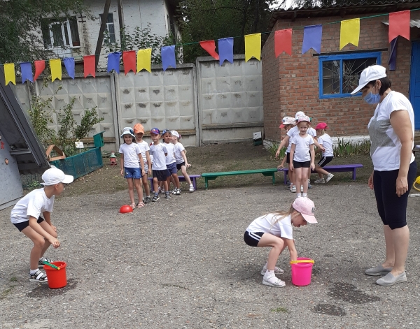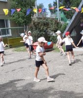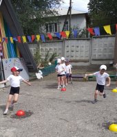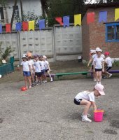 В соответствии с годовым планом в подготовительной группе прошла тематическая неделя «Летние забавы». Итогом этой недели стало развлечение: «Лето, солнце, дружба вот что нам нужно». Воспитанников заинтересовал сюрпризный момент - волшебный сундучок который открывался с помощью волшебных ключей. Выполняя различные задания, дети получали заветные ключи. А задания были разные, это и оформление солнечных лучей, умывания солнышко ключевой водой, веселые прыжки солнечных попрыгунчиков. Ребята проявили ловкость быстроту, выносливость, смекалку в подвижной игре «Веселые бабочки» и «Быстрый ветерок». Знойному лету воспитанники подарили выставку с заранее заготовленными рисунками.
