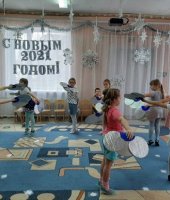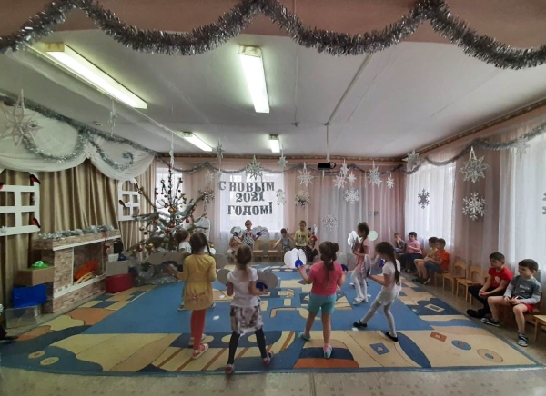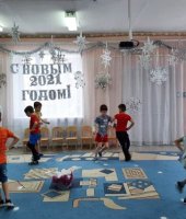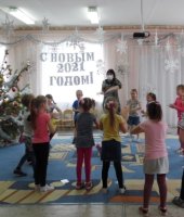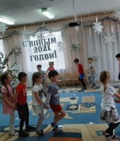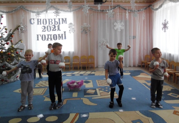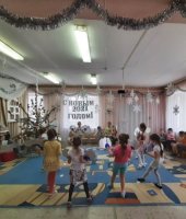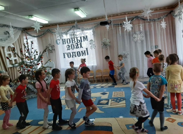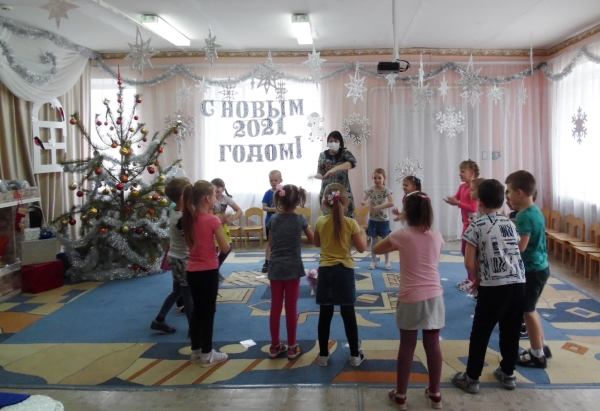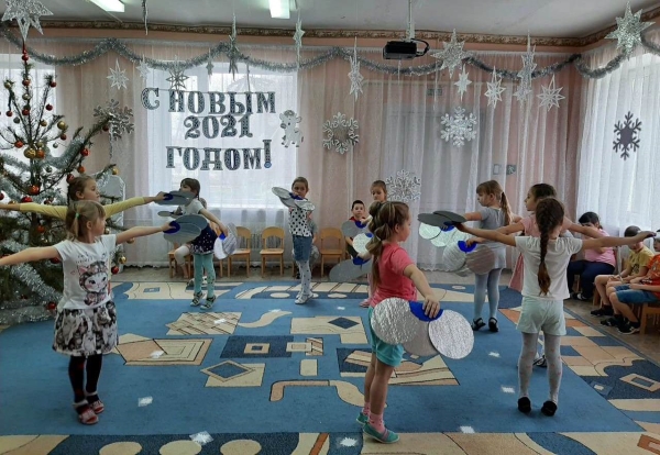 На празднике дети каждой возрастной группы ещё раз повеселились возле новогодней красавицы: водили хороводы, пели песни, отгадывали загадки, участвовали в конкурсах, читали стихи, играли в веселые игры. Снежинки кружились в воздушном хороводе, Морозцы порадовали танцевальной композицией «Снежки».
