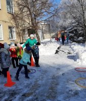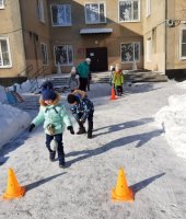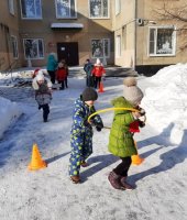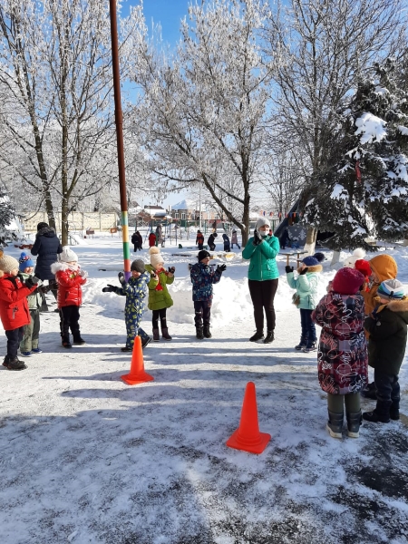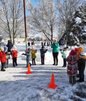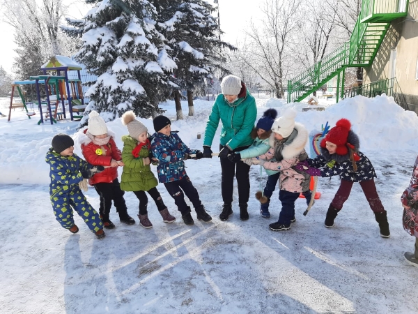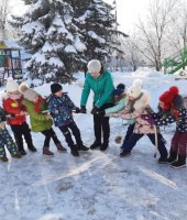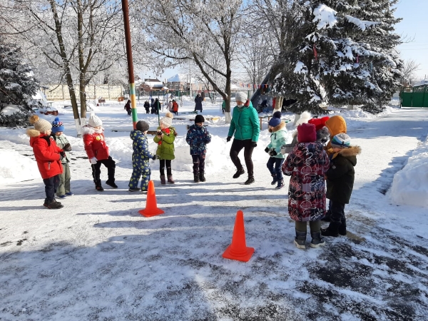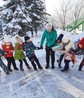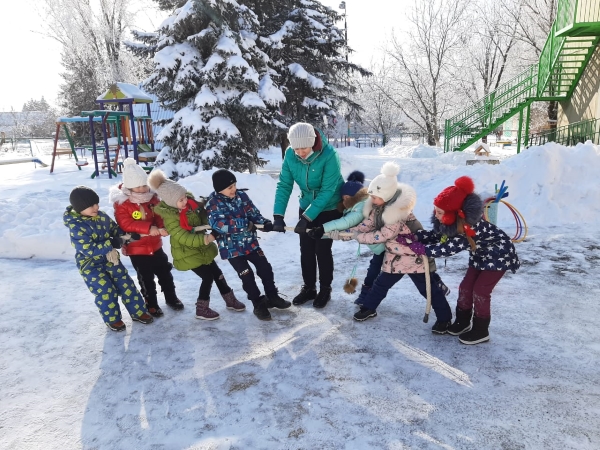 Так, 21 января я провела в подготовительной группе «Ромашки» спортивный досуг под названием «Зимние забавы». Для того, чтобы дети прочувствовали чувство противоборства, я разделила их на две команды. Одна команда – «Снежинки», а вторая – «Ёлочки». После представления команд мы перешли непосредственно к соревнованиям.