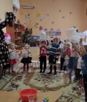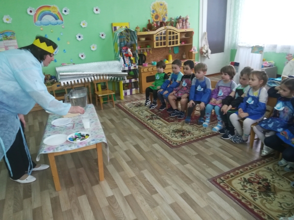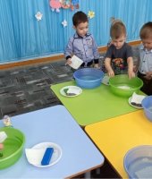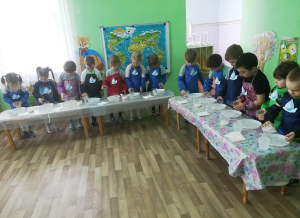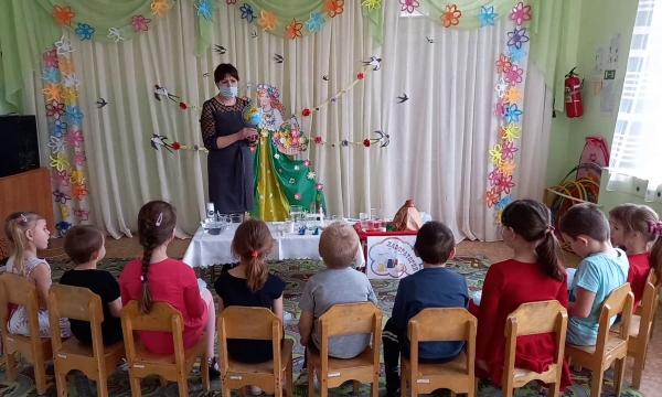Воспитатель средней группы «Радуга» И.А. Котченко пригласила ребят в царство «Капельки», куда дети отправились на «ковре-самолёте». В царстве «Капельки» ребята узнали о свойствах воды и сами приняли участие в опытах и экспериментах с водой.