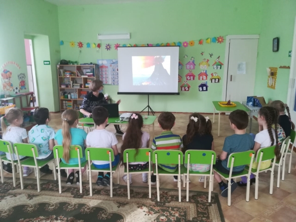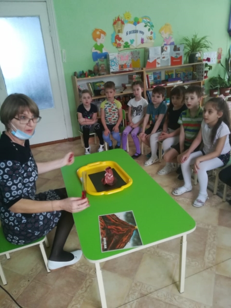 Воспитанники подготовительной группы «Ромашка» получили посылку с интересным предметом – пемзой. Воспитатель Н.Л. Локоть используя презентацию, рассказала об извержениях вулканов и происхождении пемзы. А затем продемонстрировала мини извержение вулкана.