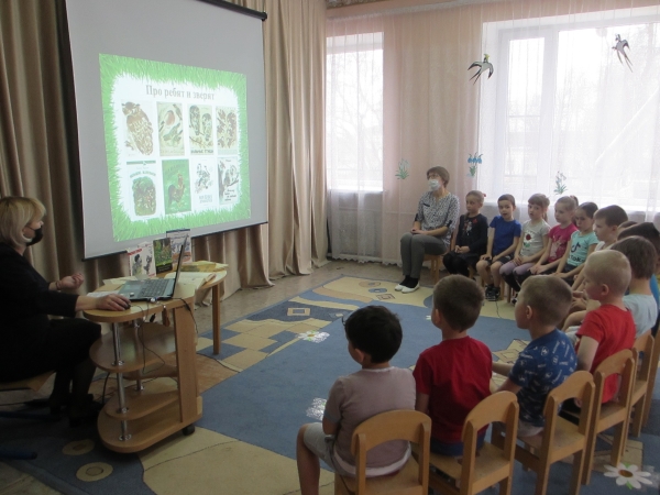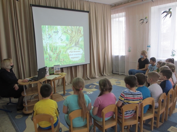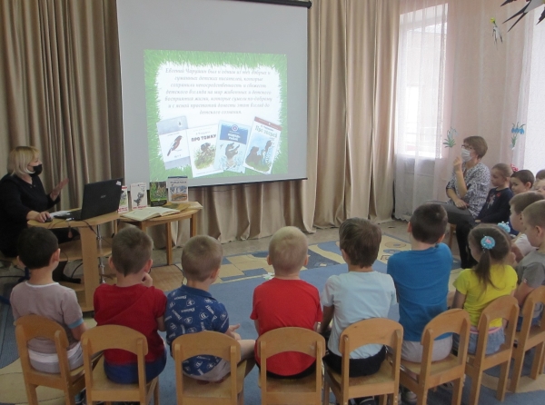 Наталья Петровна провела с ребятами каждой возрастной группы экологические занятия «Про белочек, зайчат и весёлых медвежат». Дети узнали много интересных фактов из биографии писателя, о его любви к природе, животному миру, о способах изображения животных и птиц. Библиотекарь обратила внимание ребят на то, как писатель показывал внешность зверя, его повадки, нрав, характер.