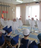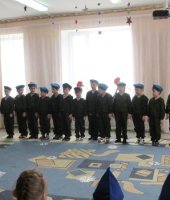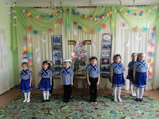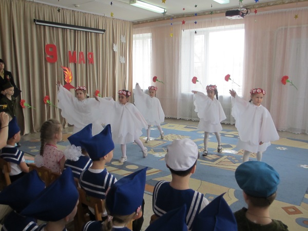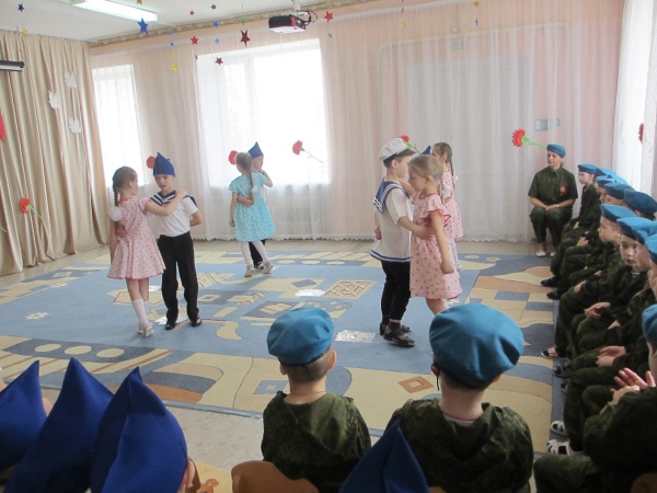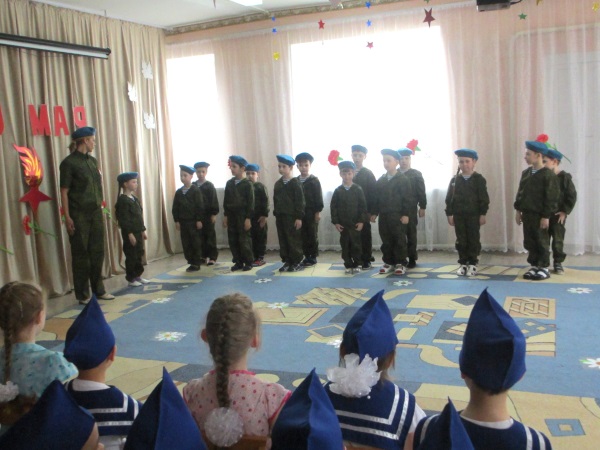 Итоговым мероприятием выполнения плана работы «Мы память бережно храним» в МБДОУ № 33 «Светлячок», стало мероприятие «Строевая - маршевая для старших групп», подготовленное педагогами Агафоновой Л.М., Локоть Н.Л., Жевтяк Н.Н., Ермак Л.В., где ребята в форме моряков и десантников продемонстрировали умение в перестроении, маршировке, рассказывали речёвки и девизы. А между выступлениями были представлены музыкальные композиции в исполнении воспитанников старшей группы: «Шофёры» и «Журавли». Ребята, посещающие хореографический кружок «Каблучок» исполнили военный вальс.