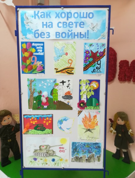 Педагоги с ребятами и при помощи родителей оформляли открытки, стенгазеты, лепбуки, а также стенды: «Как хорошо на свете без войны!», «Города - герои», «Оружие и техника Великой Отечественной войны», «Военные профессии» и др..