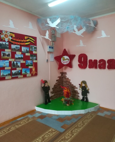 В рамках реализации плана работы «Мы память бережно храним», посвященного 76 годовщине победы в ВОВ в МБДОУ педагогами было проведено ряд мероприятий направленных на воспитание патриотических чувств у дошкольников: занятия, беседы, просмотр иллюстраций, презентаций, видеофильмов о подвигах нашего народа; акции: «Окна Победы», «Георгиевская ленточка», «Цветок за того парня». Проведены музыкальные гостиные «Песни, с которыми мы победили». Ребята посетили виртуальные экскурсии в Егорлыкский историко-краеведческий музей и музей МБОУ ЕСОШ № 1.