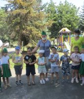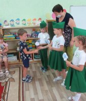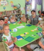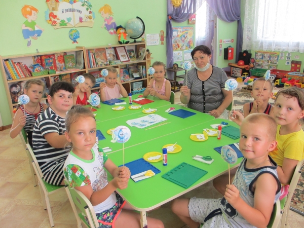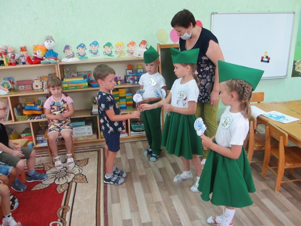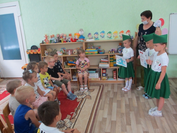 Команда «Эколята» также посетила возрастные группы, где рассказала младшим ребятам о необходимости бережного отношения к воде и вручали смайлики «Берегите воду!».
