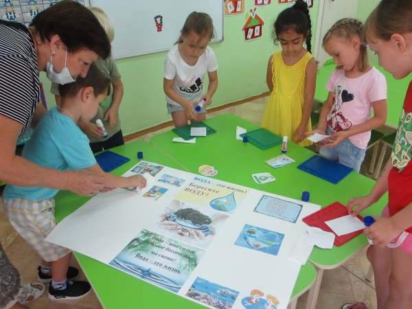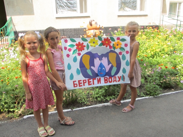 Итогом тематической недели стала акция «Берегите воду!». К акции ребята подготовительной группы «Непоседы» с воспитателем Левиной Е.И. готовились в течение всей недели: оформили коллаж «Берегите воду!», смайлики для малышей с капелькой воды и иллюстративным напоминанием «Не забудьте закрыть кран» (кран с капающей капелькой). Ребята старшей группы «Радуга» с воспитателем Жевтяк Н.Н. в помощь команде «Эколята» оформили плакат «Берегите воду!».