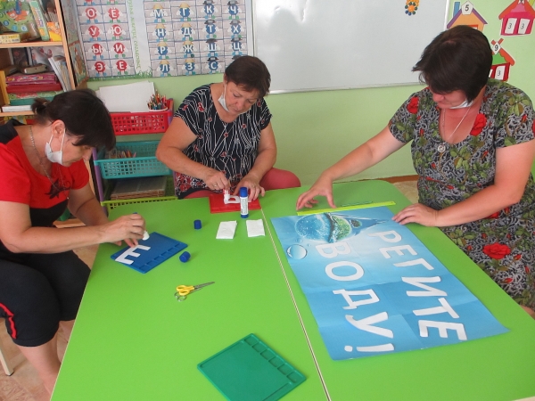 Воспитатели Левина Е.И., Жевтяк Н.Н. и Мамай Н.М. оформили плакат «Берегите воду!» и подготовили раздаточный материал в виде листовок с призывом беречь воду, экономном её расходовании.