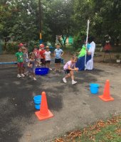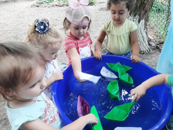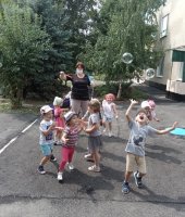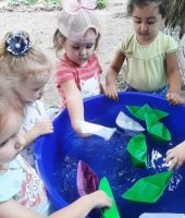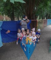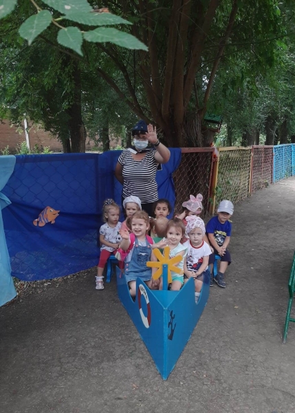 А наши маленькие дошколята (младшая группа) с воспитателем Агафоновой Л.М. отправились на море, где их ждал капитан - музыкальный руководитель Ермак Л.В.. Путешествуя на корабле малыши попали на островок где пускали кораблики, ловили рыбку, ходили по мостику, удовольствием ловили мыльные пузыри.