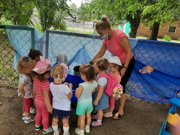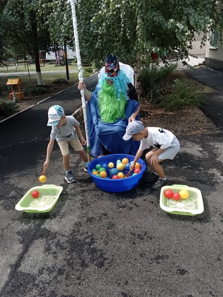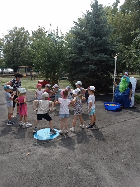 Царь Нептун приходил в каждую возрастную группу, так в подготовительной группе в роли Нептуна был воспитатель Левина Е.И., в старшей группе - Котченко И.А., в средней - Мамай Н.Н., а в роли Водяного - музыкальный руководитель - Ермак Л.В.. Педагоги заранее подготовили сценарий праздника, костюмы, атрибуты. С детками разучили стихи, песни, танцы, изготовили маски рыбок.