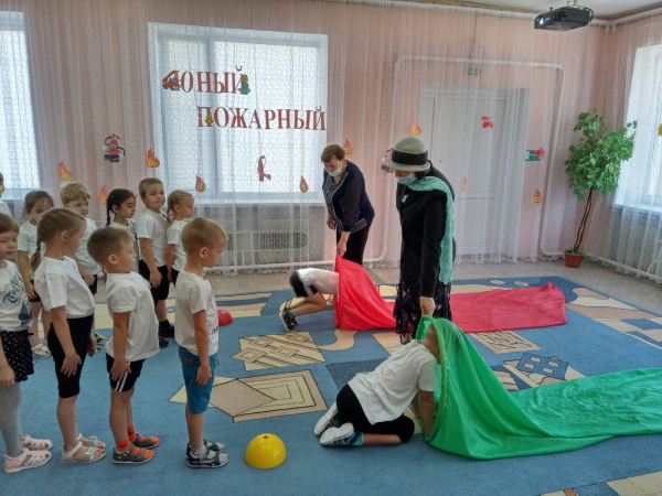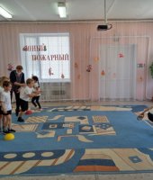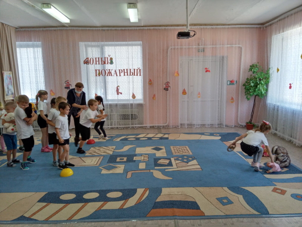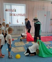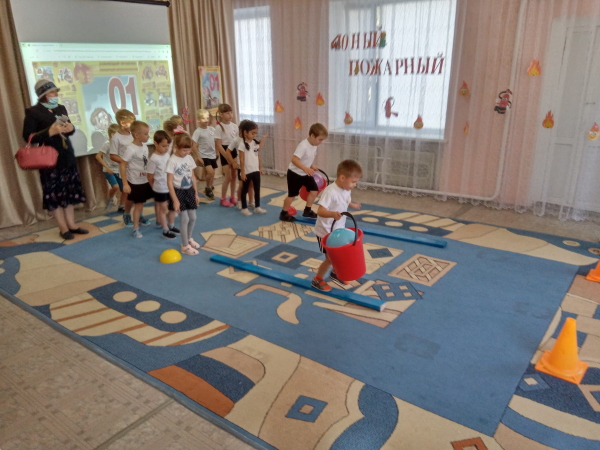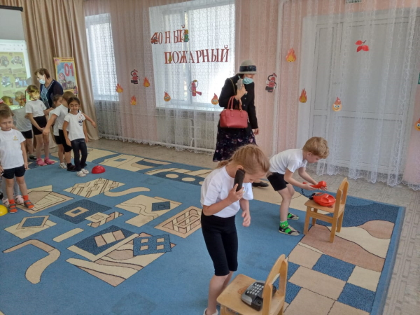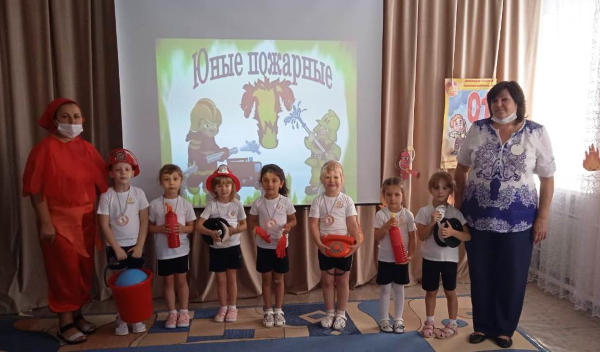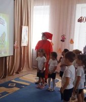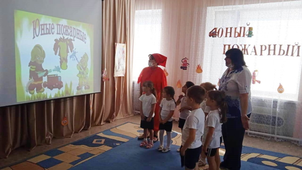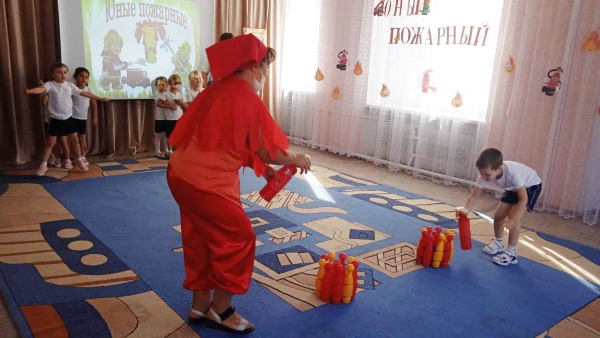 К ребятам старшей группы «Радуга» приходил в гости Огонёк (в роли младший воспитатель Левонян С.Н.). Дошколята вместе с Огоньком участвовали в соревнованиях «Юные пожарные». В подготовительную группу «Непоседы» пришла старушка Шапокляк (в роли воспитатель Жевтяк Н.Н.) со своей крыской, она играла со спичками, шутила с огнём, чем очень всех расстроила, ведь Шапокляк совсем не соблюдала правила пожарной безопасности, поэтому ребята с воспитателем Левиной Е.И. и музыкальным руководителем Ермак Л.В. рассказали как опасен огонь, и почему надо соблюдать правила пожарной безопасности. А ещё ребята продемонстрировали свои знания, смекалку чувство взаимопомощи, выдержку, участвуя в соревнованиях.
