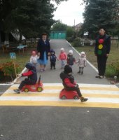 С ребятами старших групп МБДОУ проведены инструктажи по правилам езды на велосипеде и самокате. А в ОСП «Берёзка» к ребятам приехал на велосипеде герой мультфильма «Фиксики» - Симка и рассказал о правилах езды на велосипеде. В детском саду «Светлячок» проведено спортивное развлечение «Пешеходная наука», в ОСП «Берёзка» - развлечение «Юные пешеходы», в ОСП «Солнышко» - КВН «Знатоки ПДД».