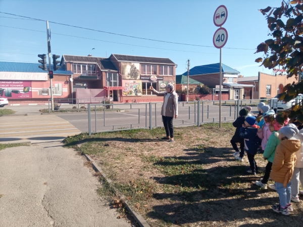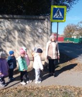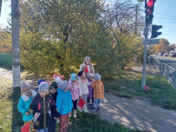 Мы с воспитанниками старшей группы, посещающими кружок «Азбука безопасности» с целью систематизации знания правил дорожного движения совершили экскурсию к светофору. В ходе этой экскурсии ребята вспомнили название дорожных знаков, рассмотрели светофоры для пешеходов и водителей, наблюдали за движением транспорта, пешеходов, и закрепили умение переходить улицу по пешеходному переходу, соблюдая сигналы светофора. А ещё ребята вспоминали загадки и стихи про светофор.