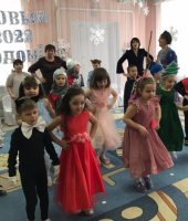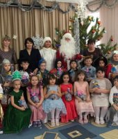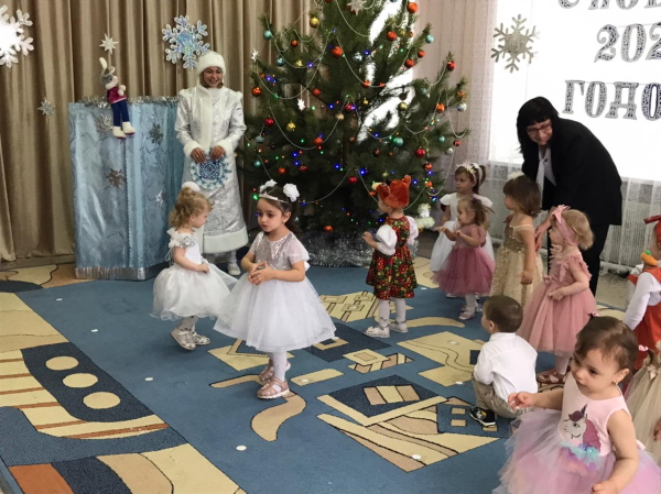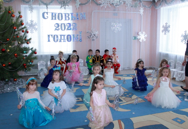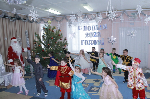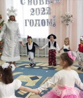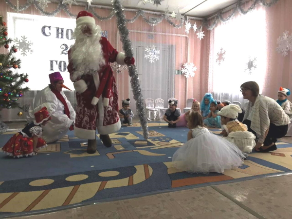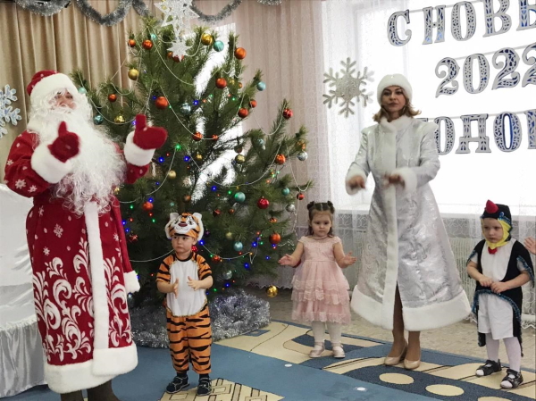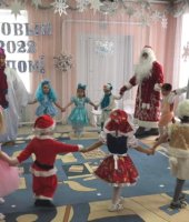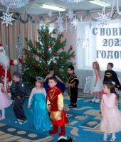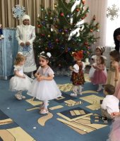 Атмосфера праздника царила в детском саду все предновогодние 2 недели, и проведённые утренники окунули всех в сказку. Это были самые волшебные и чудесные дни для ребят. Коллектив ДОУ творчески подошёл к подготовке новогодних мероприятий. Совместно с детьми украсили возрастные группы, фойе создавав праздничную атмосферу: по сказочному выглядят окна в детском саду; голубые ели, растущие на участке украшены колокольчиками, конфетами и другими игрушками, сделанными руками родителей совместно с детьми. На беседках возрастных групп – новогодние и зимние персонажи, игрушки. У входа в здание - креативные ёлки, снеговики и сани с подарками. Разноцветные, сверкающие гирлянды и ярко украшенная ёлочка принесли детям ощущение чуда.
