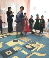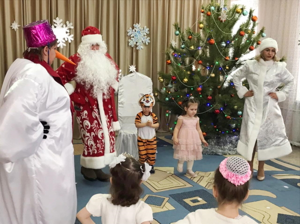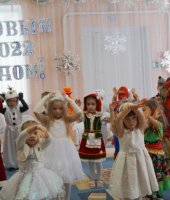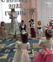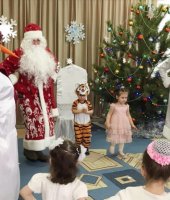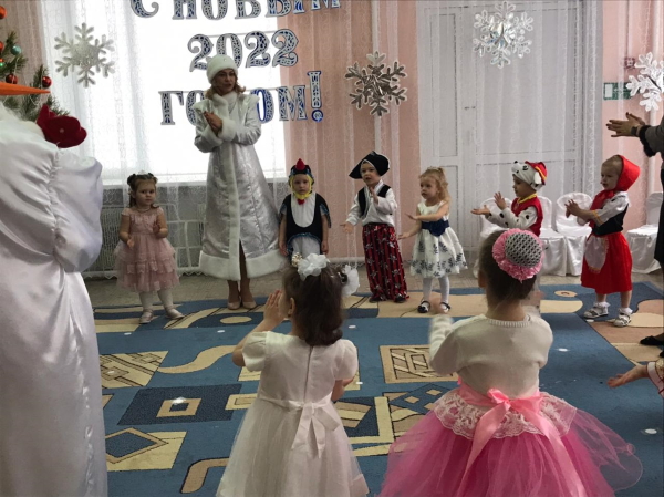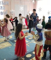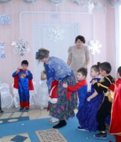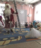 Ребята приходили на представления нарядные, веселые в предчувствии праздника. И их надежды оправдались. Самых маленьких воспитанников встречала Снегурочка, а в гости приходил Зайчик, которого дети обогрели своими песнями, танцами и играми. К ребятам младших групп приходили Снеговики, а к старшим проказница бабка Ёжка.