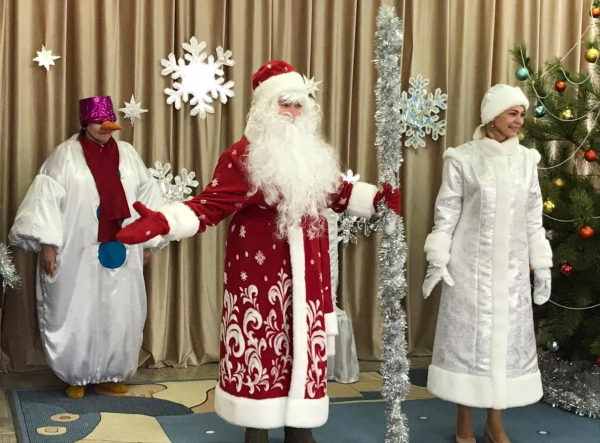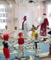 Педагоги, участвовавшие в новогоднем представлении, проявили себя настоящими артистами, показав все свое творческое мастерство, артистизм, задор и организаторские способности. Им пришлось перевоплотиться в Бабу Ягу (в роли воспитатель Локоть Н.Л.), в Снеговиков (роли исполнили воспитатели Котченко И.А. и Ковальчук Т.А.), Снегурочку (воспитатель Агафонова Л.М.). Дети смогли окунуться в праздничную атмосферу приключений, поучаствовать в интересных конкурсах, танцах, хороводах вокруг ёлки. И, конечно, кульминацией всех утренников была встреча с главным героем праздника - Дедом Морозом, для которого наши воспитанники с особым удовольствием пели, читали стихи и танцевали.
